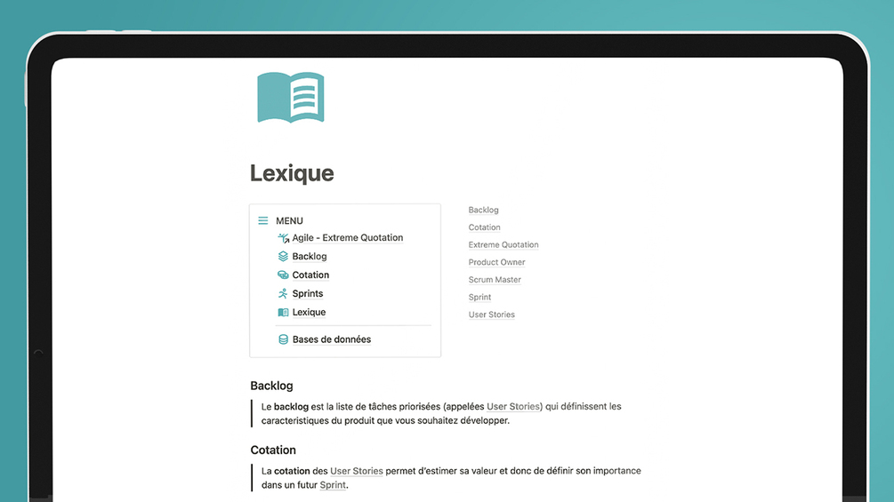 Notion Template - Méthode Agile et Extreme Quotation